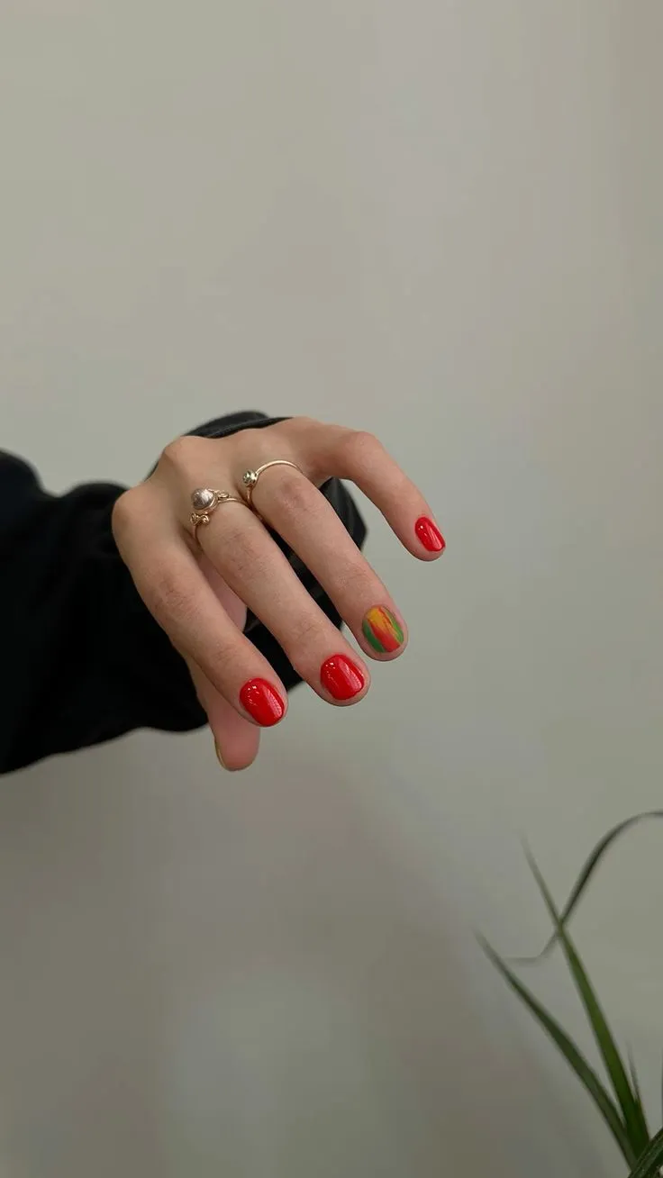 Яркий летний маникюр на короткие ногти