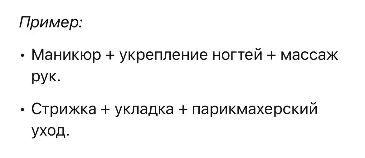 Люди обожают обновления к лету — и это отличный момент для создания тематических предложений. Придумайте наборы услуг, которые идеально подойдут для подготовки к лету или обновлению образа.