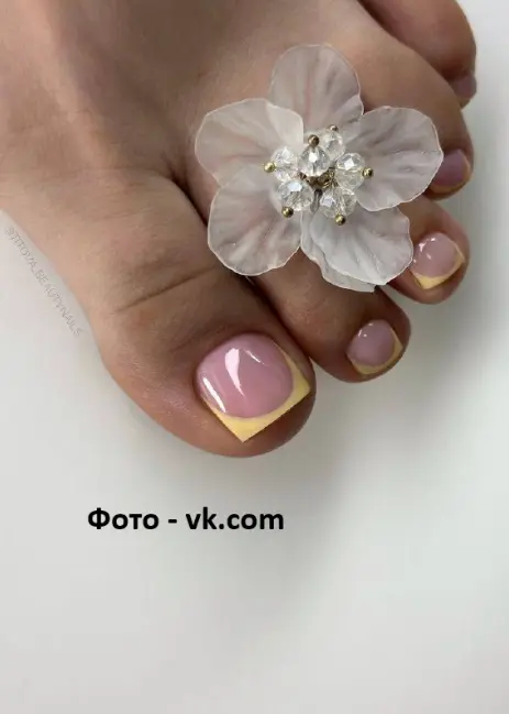 Желтый педикюр — это ярко, весело и поднимает настроение. Такой цвет делает ноги заметными и добавляет летнего или солнечного вайба в любой образ. Идеально для тех, кто любит смелые и жизнерадостные оттенки.