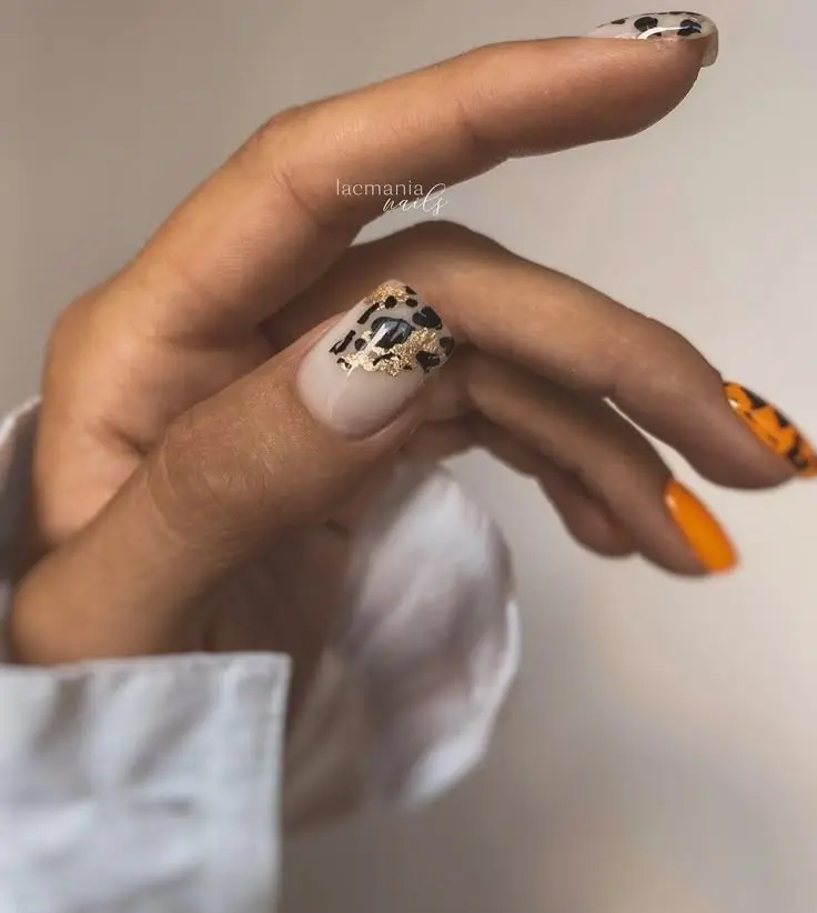 9. Ногти-арт: Попробуйте создать арт-дизайн, где леопардовый принт будет сочетаться с абстрактными линиями или точками.