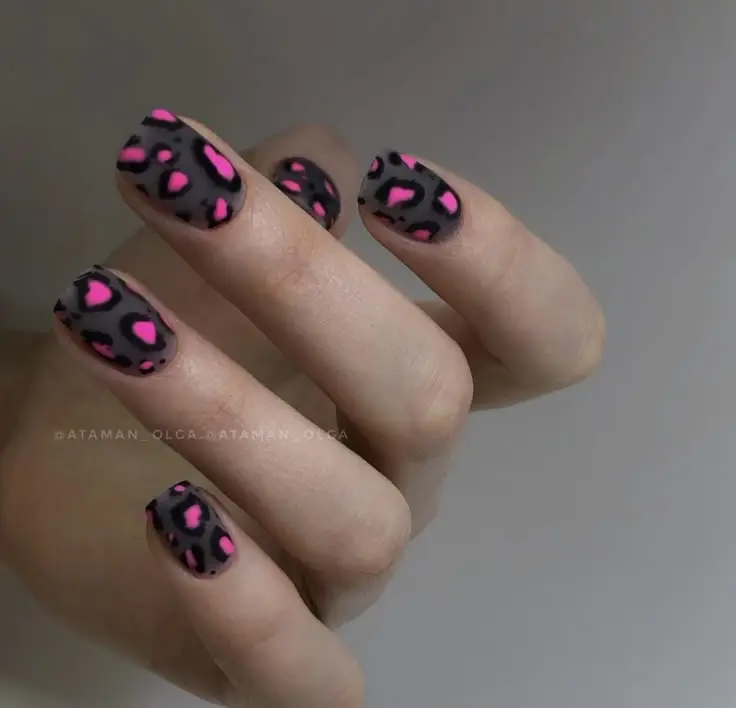 3. Матовый финиш: Создайте леопардовый принт на матовой основе. Матовые ногти выглядят стильно и утонченно, а принт добавляет интересный контраст.