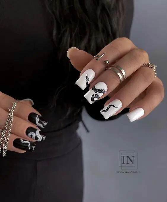 9. Ногти с рисунком в виде змеи: