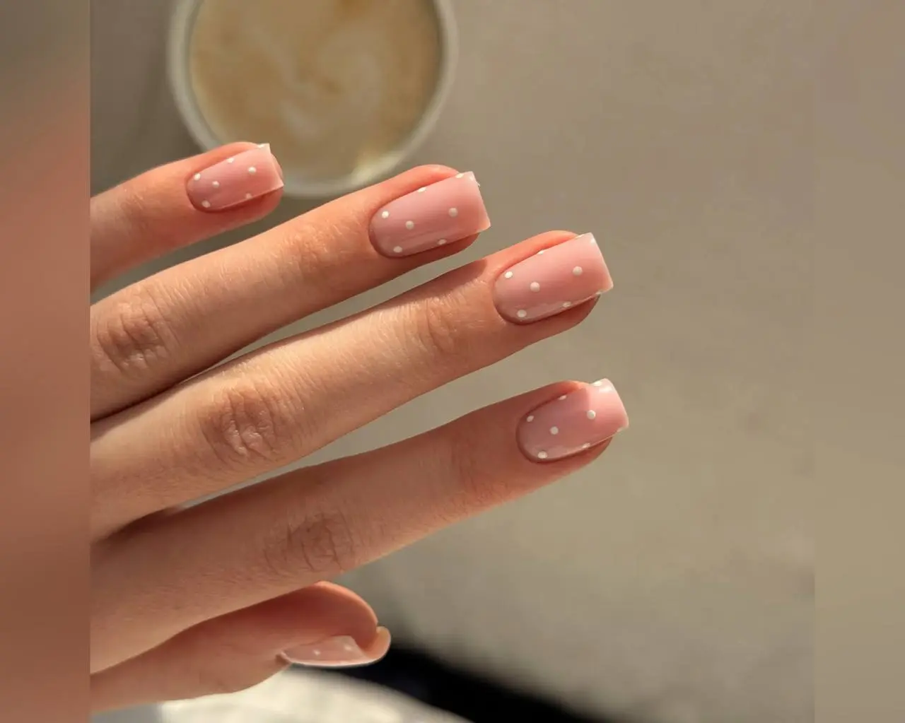 1. Нежный маникюр с горошком