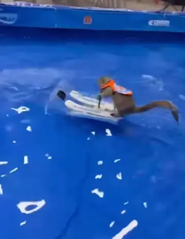 Белка, которая научилась кататься на водных лыжах