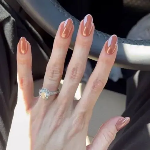 Нежно-кофейные и карамельные тона — альтернатива розовому. Добавь к ним хром или шиммер, и получишь универсальный маникюр «на все случаи жизни». Подходит для тёплого тона кожи и офисного дресс-кода.