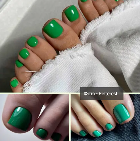 Однотонный зеленый педикюр — ТОП-3 дизайна этой недели💚